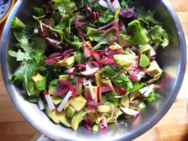 Radishes add a juicy crunch and sweet peppery flavor to this springy salad for which you can use any kind of salad green you have--arugula, lettuces, mizuna, sorrel, tender kale or chard or beet thinnings etc.... Read more »